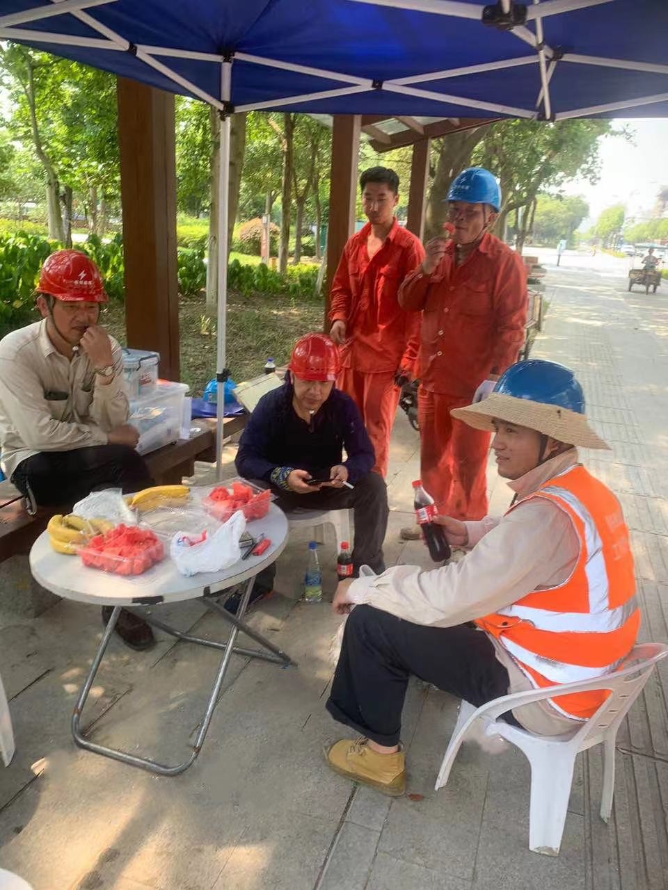炎炎夏日送清涼,點(diǎn)滴關(guān)懷沁人心。7月12、13日我司分別為姚莊臨滬新城與嘉善縣區(qū)亭橋變的一線員工送去了清涼飲料和可口的水果?,F(xiàn)場(chǎng),部門經(jīng)理感謝一線員工不畏酷暑、堅(jiān)守崗位,向他們?cè)诟邷叵滦燎诠ぷ?、默默付出表示肯定。并叮囑他們?cè)诠ぷ鲿r(shí)做好各項(xiàng)防暑降溫措施,科學(xué)合理安排作業(yè)時(shí)間,保障自身健康,要時(shí)刻緊繃安全生產(chǎn)之弦,嚴(yán)禁超負(fù)荷、超強(qiáng)度作業(yè)。同時(shí),鼓勵(lì)他們繼續(xù)克服困難,積極為公司作出更大貢獻(xiàn)。職工利益無小事, 一枝一葉總關(guān)情。這一次愛心之舉表達(dá)了公司對(duì)一線職工的濃濃情意,如夏日中的一股清流,不僅滋潤(rùn)了員工們的心田,帶去了“心靈上"的溫暖,讓員工感受到公司的關(guān)愛,振奮了他們的“精氣神”,也讓員工的底氣更足、干勁更足、幸福感更足,架起了公司與員工之間理解和體諒的橋梁,進(jìn)一步增強(qiáng)了職工的凝聚力和向心力。更充分體現(xiàn)了公司的社會(huì)責(zé)任和擔(dān)當(dāng),在全社會(huì)營(yíng)造了關(guān)愛工人、發(fā)揚(yáng)精神的良好氣氛,對(duì)營(yíng)造敬業(yè)奉獻(xiàn)的社會(huì)氛圍起到積極的促進(jìn)作用。關(guān)愛活動(dòng)激發(fā)了一線工作人員“戰(zhàn)高溫、斗酷暑”的工作熱情與拼搏干勁,大家紛紛表示,將會(huì)把公司的關(guān)愛和鼓勵(lì)轉(zhuǎn)化成努力工作的不竭動(dòng)力,以堅(jiān)定的信心和奮發(fā)向上的精神狀態(tài)積極投身到工作中,立足工作崗位,克服高溫影響,繼續(xù)再接再厲發(fā)揚(yáng)吃苦耐勞、無私奉獻(xiàn)的精神。誰(shuí)說站在光里的才算英雄,無懼38度高溫“烤”驗(yàn),汗水浸透衣服,只為了這座城市用電安然無恙,牢牢筑起用電保障的堅(jiān)固防線,這才是城市真正的英雄。