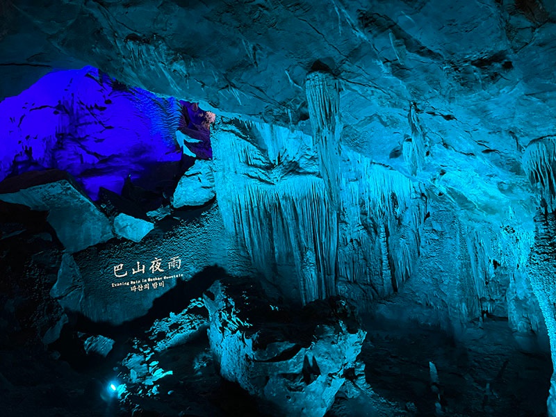 隨后乘坐大巴車,在婉轉(zhuǎn)的山路上行駛,到達(dá)重慶武隆芙蓉洞。芙蓉洞是一個(gè)大型石灰?guī)r洞穴,形成于第四紀(jì)更新世(大約120多萬年前),發(fā)育在古老的寒武系白云質(zhì)灰?guī)r中。鐘乳石在燈光的照射下顯得絢麗多彩,引人入勝。
