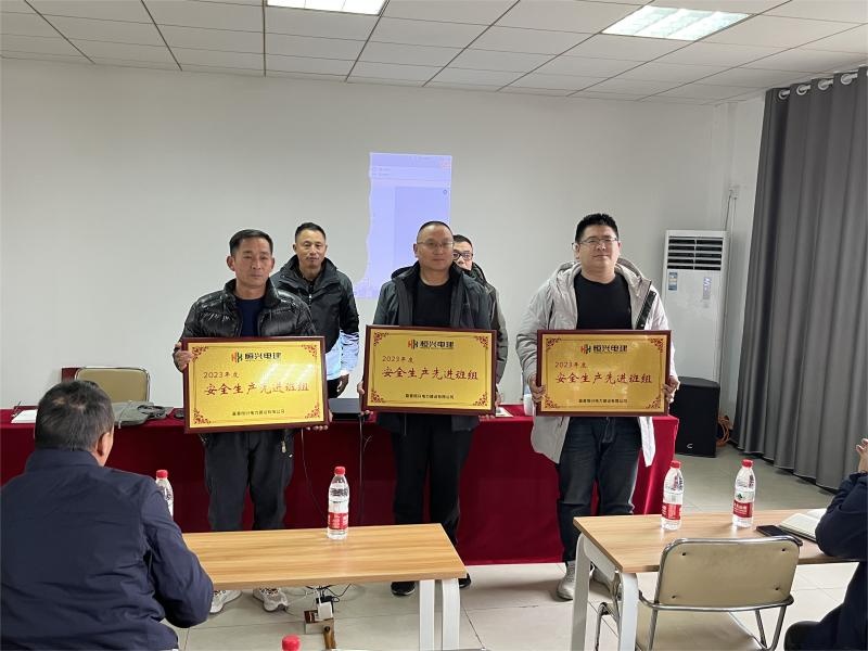會議上,恒興電建領(lǐng)導(dǎo)對在2023年度安全生產(chǎn)工作中表現(xiàn)卓越的項目部進(jìn)行了隆重表彰,并頒發(fā)了“2023年度安全生產(chǎn)先進(jìn)班組”、“標(biāo)準(zhǔn)化示范點(diǎn)”、“優(yōu)秀安全員”三個榮譽(yù)獎項。三君電力和項目部代表們紛紛上臺領(lǐng)獎,共同分享著這份榮譽(yù)與成就。